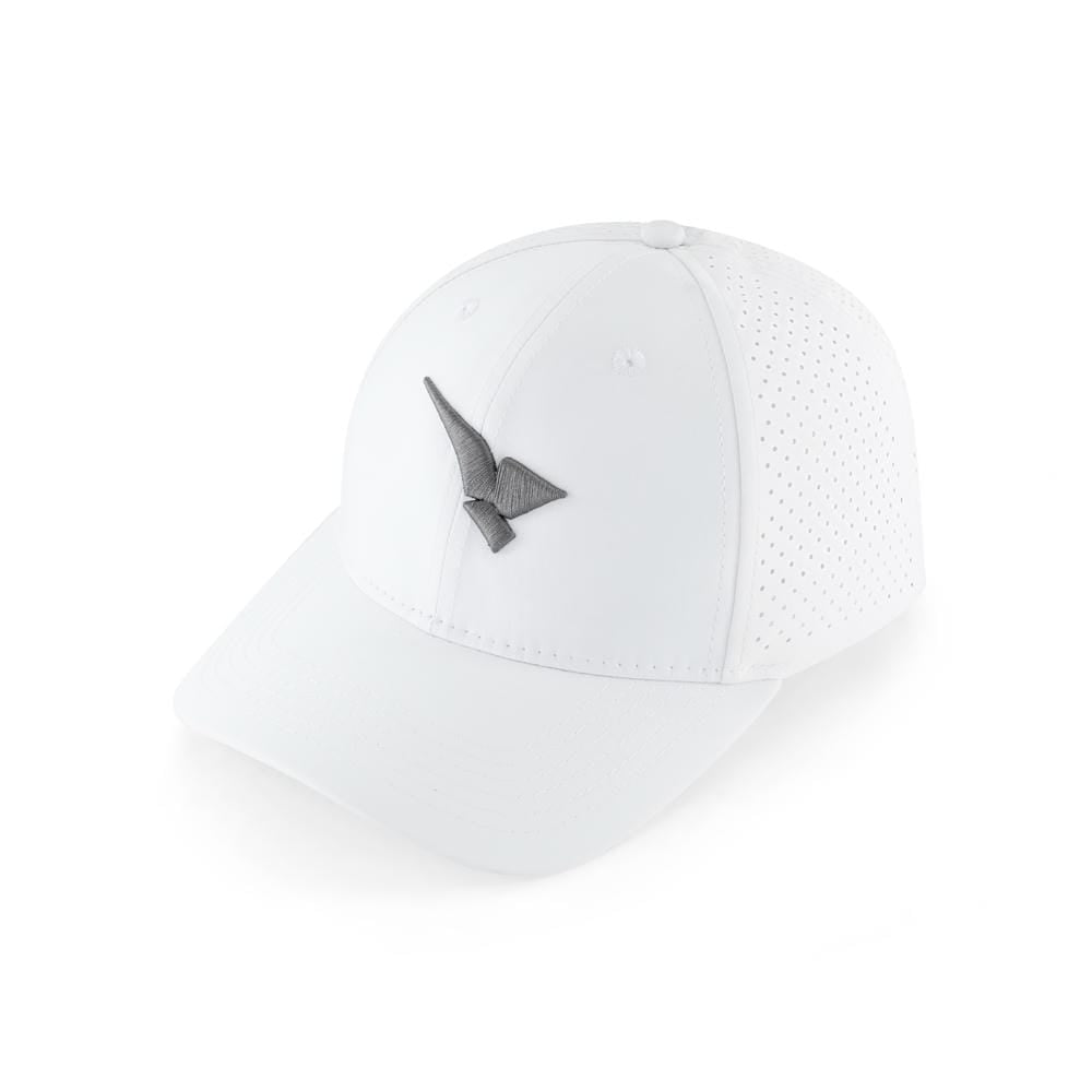 Elevate your game with the Aguila Golf White Performance Perforated Cap, a sleek and functional essential designed for golfers who demand both style and comfort on the course. This crisp white cap combines modern athletic aesthetics with superior ventilation, featuring the iconic Aguila grey eagle emblem prominently embroidered on the front for a sophisticated, premium look.