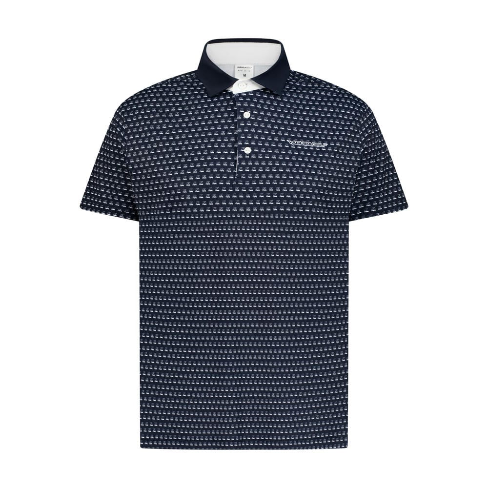 Aguila Golf Moderno Navy Golf Cart Micro-Print Polo Shirt