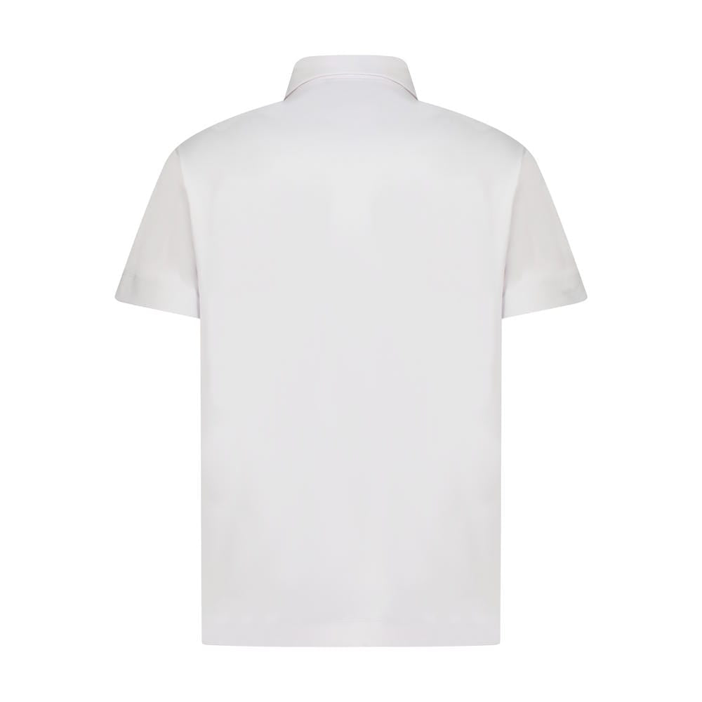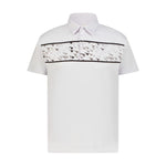 Soar with effortless elegance in the Aguila Golf Men's Moderno Flight Short-Sleeve Performance Polo Shirt in crisp White. This refined design features a clean white base accented by a bold horizontal chest band of tonal gray and charcoal eagle-wing motifs, symbolizing freedom and precision in every swing. The classic collar and concealed button placket maintain a timeless polo silhouette, while the lightweight micro-stretch fabric ensures exceptional comfort, breathability, and full range of motion. Subtle Aguila branding inside the collar and a discreet embroidered wing logo on the back yoke add authentic finishing touches. Ideal for tournament play or casual rounds, this polo delivers elevated style and peak performance in a versatile, easy-to-pair neutral.