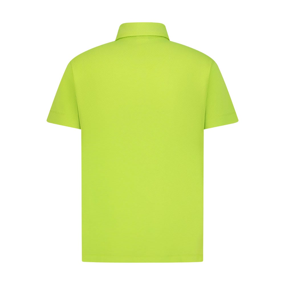 Turn heads and light up the fairway in the Aguila Golf Moderno Dewdrop Men's Short-Sleeve Polo Shirt in electric lime green. This high-visibility performance polo fuses bold, contemporary style with cutting-edge functionality, crafted from premium micro pique fabric with a subtle dewdrop texture that maximizes airflow and adds a dynamic visual pop. The self-fabric collar features a vibrant red inner contrast taping for a sporty edge, while matching lime buttons and a sleek black embroidered Aguila Golf logo complete the modern look. Built for warm-weather supremacy, its lightweight 200 GSM construction, four-way stretch, and advanced moisture-wicking keep you cool, dry, and swinging freely from the first tee to the 19th hole. Perfect for golfers who play with confidence and want their apparel to match their energyโ€”this is statement-making golf wear at its finest.