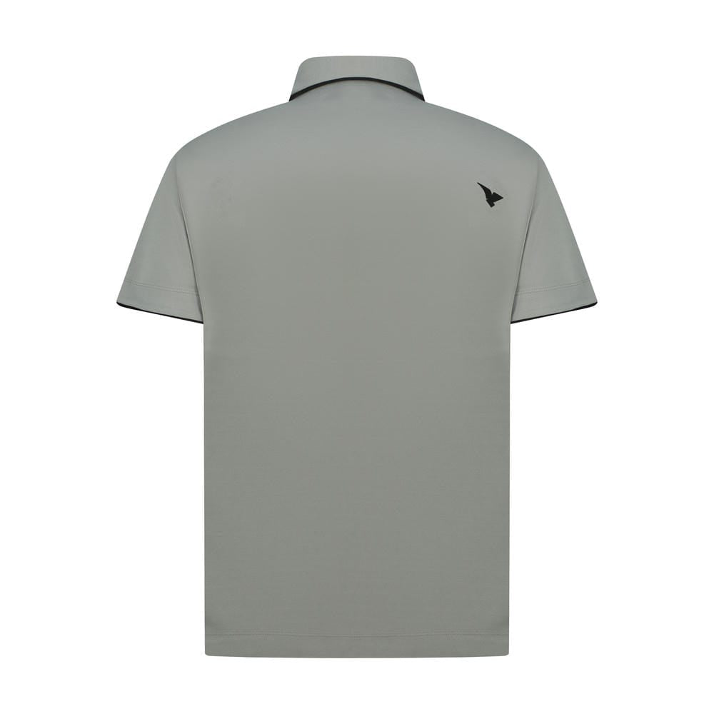 Refine your game with understated sophistication in the Aguila Golf Moderno Classic Sage Men's Short-Sleeve Performance Polo Shirt. Constructed from premium 200 GSM Lycra in a soft, muted sage green with sharp black contrast piping along the collar, placket, and sleeve cuffs, this polo delivers elite breathability, four-way stretch, and rapid moisture-wicking to keep you cool and composed from tee to green. A discreet black embroidered eagle logo at the back right shoulder adds a signature touch of prestige. The clean three-button placket features matte black buttons, while the athletic tailored fit includes side vents for unrestricted swing mobility and built-in UPF protection for all-day sun defense. Quick-drying and wrinkle-resistant, this versatile polo transitions seamlessly from the course to casual evenings with effortless modern style.