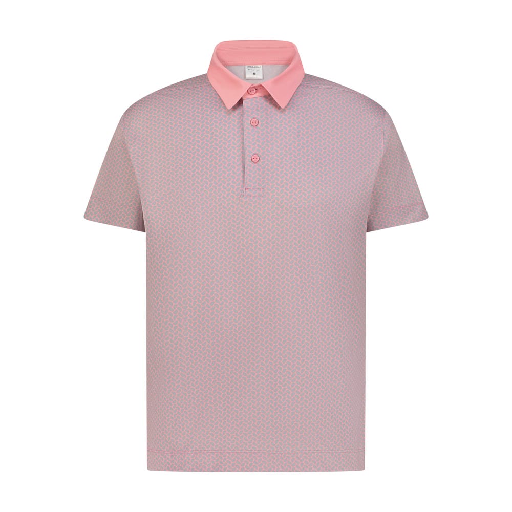 Make a bold yet refined statement on the links with the Aguila Golf Moderno Coral Geometric Micro-Print Performance Polo Shirt. This standout short-sleeve polo features an intricate all-over micro-geometric pattern in soft white layered over a vibrant coral baseโachieved through premium full sublimation printing for sharp, fade-proof detail that lasts season after season. Crafted from high-performance Lycra (200 GSM), it delivers exceptional 4-way stretch, superior moisture-wicking, and rapid-dry technology to keep you cool, dry, and swinging freely from dawn patrol to twilight. The contrasting coral collar with subtle eagle embroidery at the back neck, minimalist tonal eagle logo on the chest, and pearlized three-button placket elevate everyday play into polished performance wear.