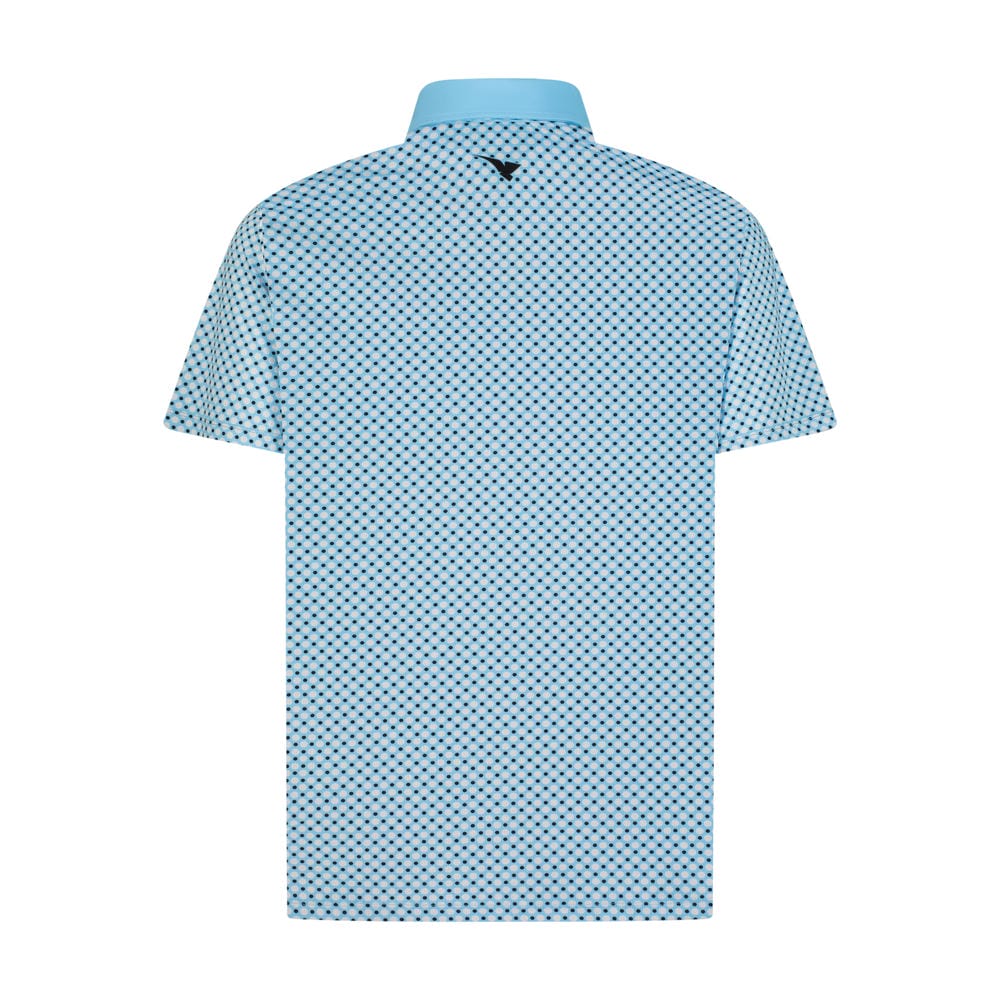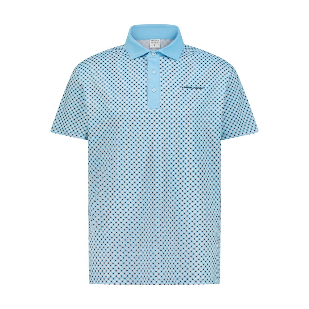 Step onto the fairway with refined confidence in the Aguila Golf Moderno Sky Blue Micro-Dot Printed Performance Polo Shirt. This sleek, short-sleeve polo combines timeless style with cutting-edge performance, featuring an all-over micro-dot pattern in crisp navy on a soft sky blue baseโcreated through premium full sublimation printing for lasting vibrancy. Crafted from lightweight, breathable Lycra (200 GSM), it delivers superior stretch, moisture management, and UV protection, keeping you cool and focused from the first tee to the final putt. The signature Aguila Golf collar, reinforced placket with pearlized buttons, and subtle embroidered branding on the chest and back neck elevate this polo from essential to exceptional.