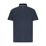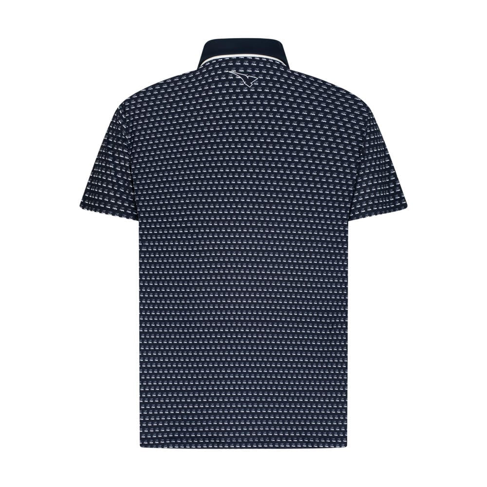 Full Sublimation Micro-Print: Intricate repeating golf cart motif in white on navyโbold yet refined, with colors that stay vibrant wash after wash.